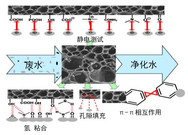 應(yīng)該注意的是,對活化過程的理解是優(yōu)化活性炭制備的基本步驟。實際上,各種化學(xué),物理和物理化學(xué)方法被用于從不同的天然或合成資源合成活性炭。化學(xué)處理涉及通過浸漬然后熱解使用活化劑,而物理過程涉及在蒸氣或二氧化碳存在下的高溫?zé)崽幚。但是,這兩種方法的組合也已用于生產(chǎn)活性炭。根據(jù)所采用的處理方法,很難預(yù)測碳的物理化學(xué)和形態(tài)特性?磥硇螒B(tài),物理化學(xué),質(zhì)地,通過改變活化時間和溫度以及所用前體的性質(zhì),活性炭的表面性質(zhì)會發(fā)生顯著變化。活性炭表面的化學(xué)性質(zhì)取決于存在于表面上的雜原子的類型,例如氧,氮,硫等。這些積累在表面上的雜原子或基團要么來自原材料本身,要么在活化過程中被引入。這在很大程度上與前體的性質(zhì)有關(guān)。所有這些特性對于使用碳作為水溶液中污染物的吸附劑具有重要意義。實際上,污染物在活性炭上的吸附是一個復(fù)雜的過程,在涉及物理作用和/或化學(xué)鍵的過程中,各種相互作用可以共存。從而,可能發(fā)生的吸附機理為靜電相互作用,氫鍵,π-π堆積相互作用,孔填充,疏水相互作用,離子交換以及其他相互作用(n-π相互作用等)和絡(luò)合反應(yīng)。圖2說明了在活性炭上吸附污染物的主要相互作用方法。