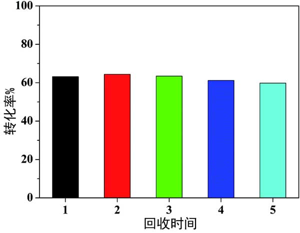 進(jìn)行回收試驗(yàn)以研究活性炭催化劑的異質(zhì)性和穩(wěn)定性。第一次催化反應(yīng)完成后,過(guò)濾回收活性炭載鉑催化劑(硫酸活化),用蒸餾水洗滌,55℃真空干燥12小時(shí),重新用于第二次催化反應(yīng)。在另外三個(gè)運(yùn)行中實(shí)施了相同的操作。同時(shí),在第一次運(yùn)行后,通過(guò)檢測(cè)回收的活性炭催化劑和濾液中的鉑量。圖3展示了回收試驗(yàn)的結(jié)果。觀察到甲基環(huán)己烷的轉(zhuǎn)化率在59.8-64.4%范圍內(nèi)有小幅波動(dòng),表明活性炭催化劑的活性在重復(fù)使用4次后幾乎沒(méi)有下降,表明活性炭催化劑具有良好的穩(wěn)定性。第一次運(yùn)行后,反應(yīng)中的鉑浸出量為0.33ppm。當(dāng)鉑催化劑從反應(yīng)體系中過(guò)濾出來(lái)時(shí),在濾液中很少觀察到催化反應(yīng),這證明了活性炭載體上的鉑作為非均相活性位點(diǎn)。