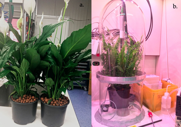 為測試選擇了三種不同的介質(zhì):活性炭和膨脹粘土、土壤。選定的植物盆栽土壤由泥炭、綠色堆肥、石灰和肥料組成;牡倪x擇基于之前的研究,因?yàn)樗鼈兪鞘袌錾铣R姷幕。對于每種類型的基材,進(jìn)行了六項(xiàng)測試:三項(xiàng)使用干基材,三項(xiàng)使用濕基材。將基板分別放入塑料容器中,即基板的暴露區(qū)域。測試了兩種不同的植物(圖1)。每種植物選擇3株進(jìn)行試驗(yàn),并選擇具有相似年齡和大小特征的植物。