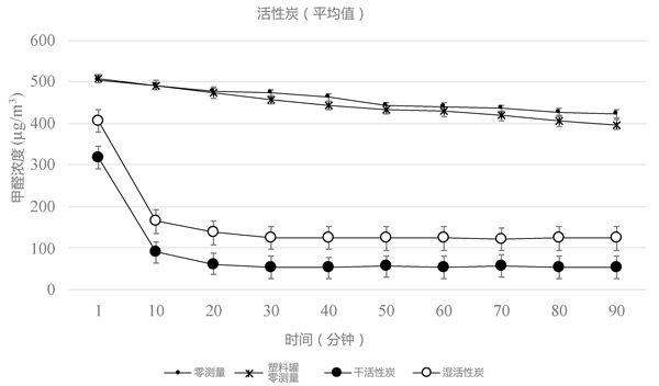 圖2:測試活性炭樣品時測得的甲醛濃度。