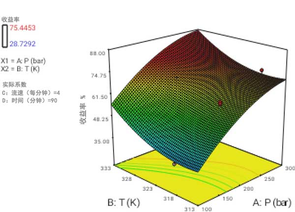 圖2:溫度和壓力對產(chǎn)量影響的3D圖形表面。