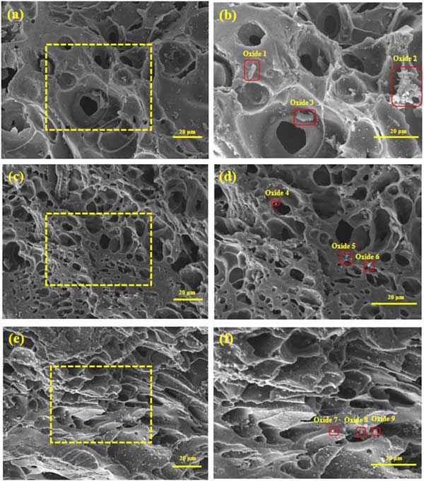 圖1顯示了活性炭載錳催化劑的表面微觀結(jié)構(gòu)。在圖1a和b中,活性炭載錳5催化劑表面孔隙分布不均勻,周圍有少量顆粒。當(dāng)Mn負(fù)載量為5%時(shí),可以在催化劑指示的塊狀附著物中檢測(cè)到少量Mn。這表明催化劑成功負(fù)載Mn,但是,它的含量很低。圖1(c)和(d)中,活性炭載錳7催化劑表面光滑,孔結(jié)構(gòu)發(fā)達(dá),孔道明顯增加,表面顆粒分布均勻。這有助于催化劑吸附氣體;钚蕴枯d錳7催化劑成功負(fù)載了中等含量的Mn元素,可以很好地改性活性炭。這些發(fā)現(xiàn)與圖3中脫硝曲線的結(jié)果一致。在圖1e和f中,活性炭載錳9催化劑表面粗糙,大小不一的孔隙分布不均勻,顆粒在表面局部堆積。這些因素堵塞了氣孔,抑制了脫硝。當(dāng)Mn負(fù)載量為9%時(shí),在催化劑表面檢測(cè)到大量附著物。高M(jìn)n含量表明Mn的過量負(fù)載可能導(dǎo)致催化劑表面21上的孔隙積累和堵塞(圖1e和f)。這可能是NO轉(zhuǎn)化率因負(fù)載過大而降低的原因之一。