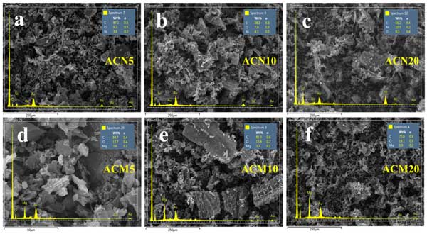 對(duì)于Mg改性樣本,命名為ACM5、ACM10、ACM20;