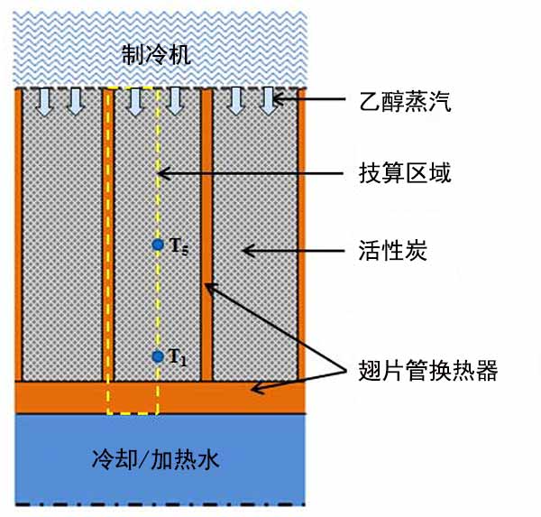 圖1.活性炭解吸過程中吸附冷卻系統(tǒng)的示意圖。
