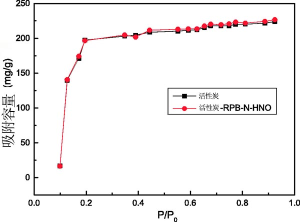 活性炭在高重力環(huán)境中的熱化合物改性。將100g活性炭作為填料層,并且以900r/min的速度操作300分鐘,其中99%氮?dú)鈴娜肟诙丝谕ㄟ^(guò)。得到的活性炭表示為活性炭-RPB-N。原始活性炭和活性炭-RPB-N用1mol·L-1HNO 3在70攝氏度,流速40L·min-1,轉(zhuǎn)速36.3Hz下進(jìn)行改性。在該處理之后,在用去離子水沖洗后,將兩個(gè)樣品在真空烘箱中在110攝氏度下干燥24小時(shí),并分別表示為活性炭-RPB-HNO和活性炭-RPB-N-HNO。