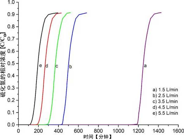 通過使用經(jīng)受不同操作參數(shù)的混合氣體測試活性炭性能,例如流速,所用長度床,所用氣體類型和活性炭。為了確定吸附容量,穿透點(diǎn)和飽和點(diǎn)分別表示硫化氫濃度何時在出口流處達(dá)到1ppm和1000ppm。此外,數(shù)據(jù)表示為重復(fù)三次的平均結(jié)果。