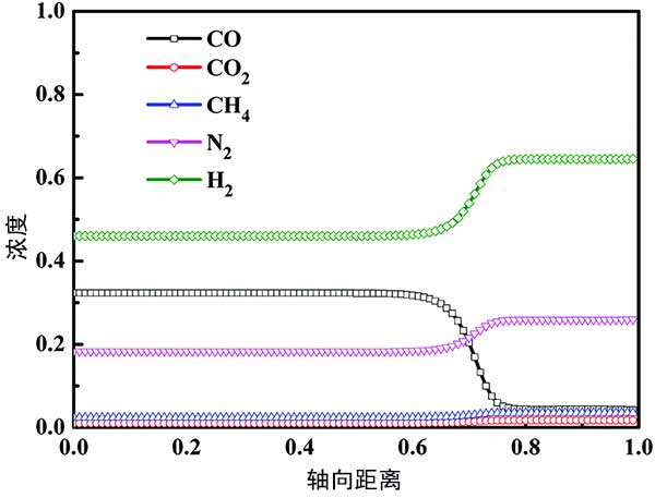活性炭吸附步驟后CO,CO 2,CH 4,N 2和H 2的軸向濃度分布在圖4標記?梢钥闯,活性炭吸附步驟后,Z/H=0.00-0.60的吸附床達到飽和,CO,CO 2,CH 4,N 2和H 2的濃度不隨軸向距離變化床的一部分,與進料氣中各組分的濃度一致。并且在Z/H的不飽和吸附床中>0.60,隨著床軸距的增加,CO濃度逐漸降低,其他成分濃度逐漸增加。最后,所有組分的濃度趨于穩(wěn)定。