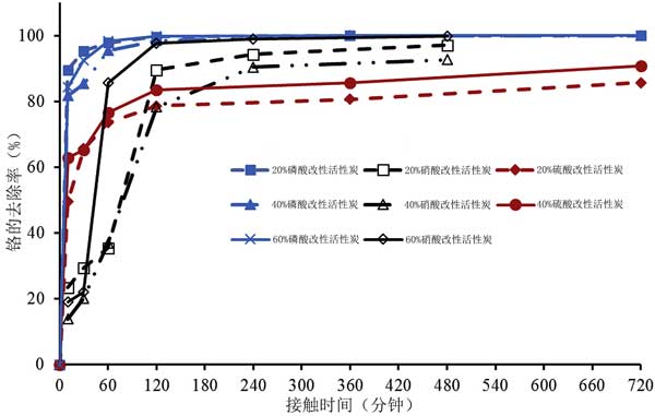 使用活性炭吸附劑處理環(huán)境中的污染物是現(xiàn)在普遍的處理方法,主要是因?yàn)榛钚蕴烤哂懈鞣N具有不同表面特征的形式。通過操縱活性炭的物理和化學(xué)表面特征(例如表面積,孔徑,孔體積和官能團(tuán))來實(shí)現(xiàn)不同的表面性質(zhì)。為了用于從水溶液中吸附金屬離子,所制備的碳的雖然物理結(jié)構(gòu)很好了但是化學(xué)性質(zhì)不是很大,需要重新改性。有時(shí)在活性炭上進(jìn)行化學(xué)再活化或二次處理方法以進(jìn)一步操縱表面性質(zhì)以改善其去除期間污染物的選擇性和吸附效率。因此,在本期我們研究各種濃度的無機(jī)酸比如硫酸、磷酸或硝酸為活性炭改性中的活化劑,測(cè)試那種活化劑能增強(qiáng)活性炭對(duì)鉻去除的效果。