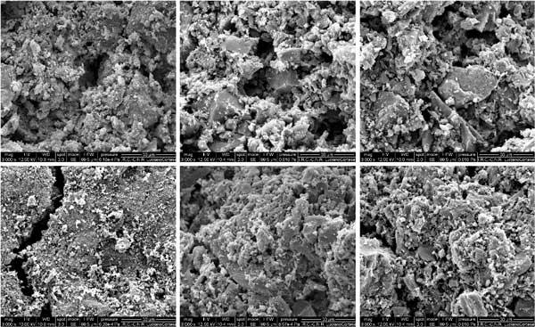 可以通過掃描電子顯微鏡,通過分析每個測試開始和結(jié)束時(shí)材料的圖像來進(jìn)一步研究此方面。注意孔徑。測試后(圖4的底部)不再存在新鮮材料大量孔隙的大部分(圖4的頂部)。在測試結(jié)束時(shí),萘碳化產(chǎn)生的碳沉積物主要以小晶粒的形式存在于活性炭表面,通常集中在表面的特定區(qū)域周圍,可能對應(yīng)于活性部位。在煤或椰子殼上的活性炭上已經(jīng)觀察到類似的碳粒和細(xì)絲,并且在這些情況下,它們的形成與鐵和堿物種的催化活性有關(guān)。在活性炭球團(tuán)的SEM圖像中,也可以區(qū)分深裂縫,這可能是熱應(yīng)力的結(jié)果。