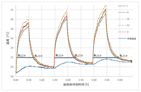 在分析曲線如圖2,圖3和圖4中,并收集結(jié)果,在一個(gè)溫度(22℃)中選擇,清楚地表明不同相變材料的影響活性炭中的量上的周期時(shí)間長(zhǎng)度與發(fā)生個(gè)體樣品中的熱交換過(guò)程。相對(duì)于溫度傳感器的更高的質(zhì)量和熱容量,即使吸附的相變材料的量很小,也可以看到處理時(shí)間的差異。當(dāng)與參比樣品(I),沒(méi)有相變材料,總的冷卻和加熱時(shí)間的所有樣品與相變材料的不同水平長(zhǎng)。對(duì)于樣品V,此時(shí)間延長(zhǎng)了7.5%,對(duì)于樣品IV,延長(zhǎng)了5.2%,對(duì)于III,延長(zhǎng)了2.4%,對(duì)于樣品II(未活化的活性炭),僅延長(zhǎng)了0.2%。
