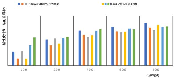 活性炭的制備在室溫下干燥之前,用蒸餾水洗滌,隨后進(jìn)行粉碎研磨處理并使用電篩篩分,以獲得63μm的均勻粉末粒度。所得粉末在使用電爐煅燒前用磷酸進(jìn)行化學(xué)預(yù)處理。根據(jù)特定比例添加磷酸來進(jìn)行活化,并在110℃的爐中干燥48小時(shí)。隨后將干燥混合物引入坩堝陶瓷中,在450℃下在爐中煅燒,使其孔隙逐漸打開。用蒸餾水徹底清洗活性炭表面的活性殘留物,該步驟用來控制活性炭的pH。這樣得到的活性炭在110℃的烘箱中再次干燥48小時(shí)獲得成品。