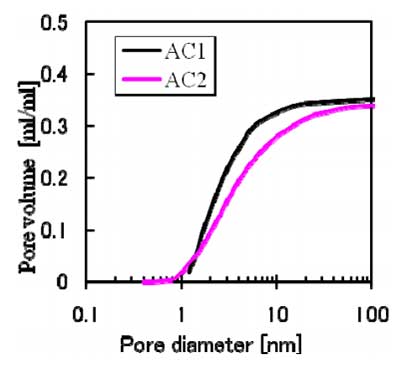 兩種活性炭(AC1:比表面積1950m2/g和AC2:具體表面面積:1190平方米/ g,每個(gè)粒徑調(diào)整在約100μm)),具有不同的孔分布被使用。 如圖1所示,AC1的孔隙廣泛地從中孔發(fā)展到大孔。該AC2主要以微孔形式存在。 兩者的性質(zhì)和孔結(jié)構(gòu)特征吸附劑如表1所示。如表1所示,兩種活性炭具有較高的比活度表面積被使用。