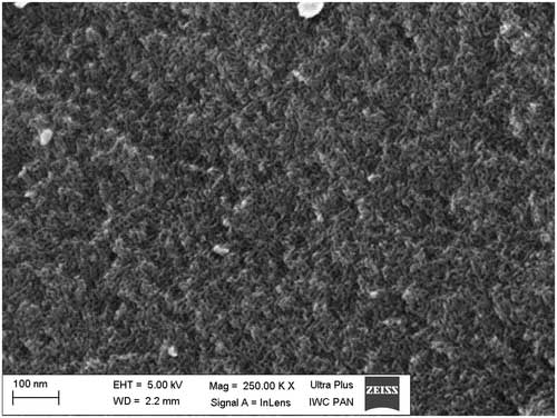 采用檸檬酸應用合成方法,通過軟模板法獲得活性炭 。在實驗的低溫(-196℃)氮吸附-解吸等溫線的基礎(chǔ)上確定了表征所研究活性炭的介孔結(jié)構(gòu)的基本標準參數(shù)。對于獲得的活性炭圖像,使用掃描電子顯微鏡(SEM),發(fā)現(xiàn)活性炭材料具有有序的,均勻的多孔結(jié)構(gòu),中孔尺寸約6nm(圖1)。