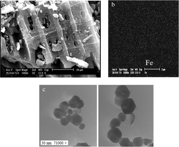 圖2、SEM(a和b)和TEM(c),活性炭的圖像。