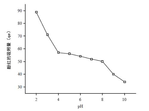 pH對(duì)吸附的影響:由于氫和氫氧根離子通常在活性炭表面上非常強(qiáng)烈地吸附,因此其他離子的吸附也受到溶液pH的影響。pH也影響染料的離子化程度以及吸附劑的表面性質(zhì)。作為pH的函數(shù)的活性炭中酚紅染料的百分比吸附的圖示于圖4中。觀察到(a)染料的吸附在2至4的范圍內(nèi)迅速降低。(b)在4-8的pH范圍內(nèi)吸附的減少變慢,和(c)在pH8-10的吸附下急劇下降。在研究的活性炭上染料吸附的這種獨(dú)特的pH依賴性變化可能是由于吸附物的復(fù)雜性質(zhì)以及吸附劑在不同介質(zhì)pH下的凈電荷變化。