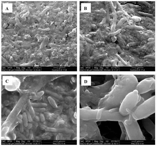 圖3:活性炭添加膜生物反應(yīng)器實驗結(jié)束時結(jié)垢膜的SEM成像。